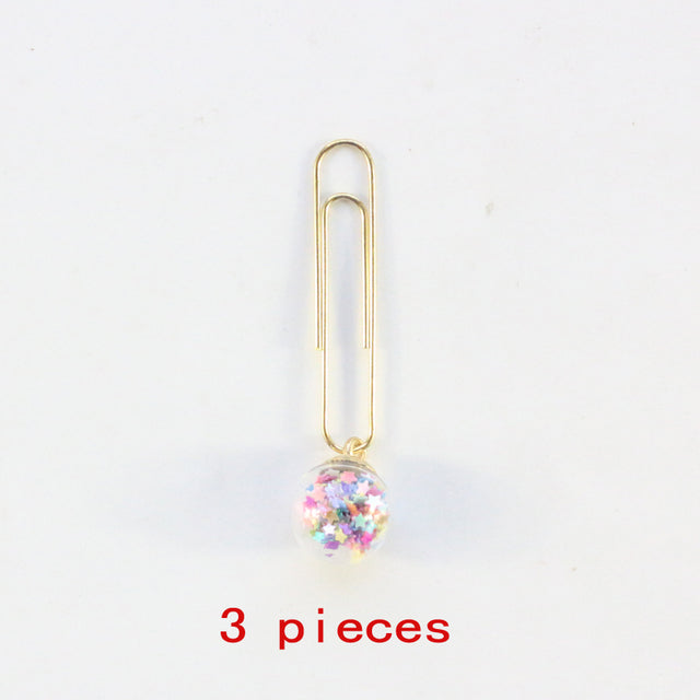 Introducing our Cute Paper Clips! These candy sequin-adorned metal clips are perfect for holding papers together in style. They also make great bookmarks, and are sure to liven up any school or office supplies set. Each clip measures approximately 5 cm in length, with a 1.5 cm ball diameter. They come in a variety of colors including pink, red, purple, blue, green, light green, gold, mix, white , sliver, yellow, and light yellow.pick your favorite(s) or grab a variety - at this price you can afford to!