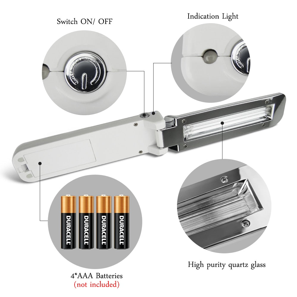 Handheld UVC Disinfection Lamp 2W UV Sterilization Lamp Folding Ultraviolet Disinfection Light Travel Sterilizing Lights